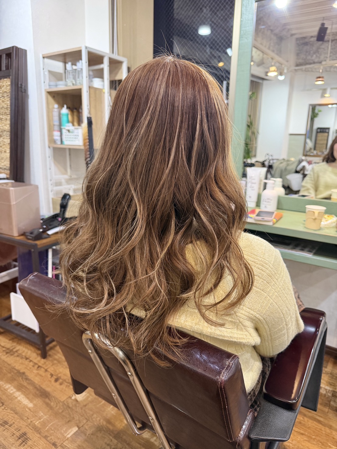 画像のように、柔らかく波打つロングヘアに、細かく繊細に入れたハイライトが自然に溶け込み、光が当たるたびに立体感と透明感を演出します。
